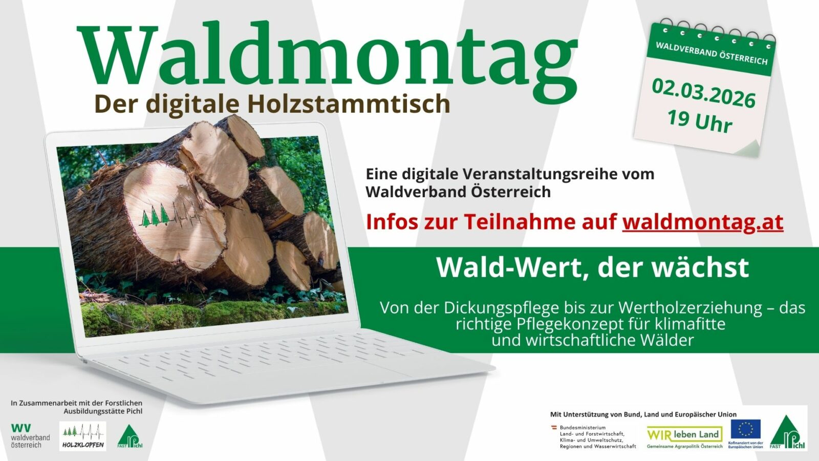 Als Experten begleiten uns Fö. Michael Drug, Geschäftsführer des Kärntner Waldpflegevereins sowie DI Christoph Steiner, Forstdirektor der Gräfl. Foscari Widmann Rezzonico’schen Forstdirektion in Paternion. Der Kärntner Waldpflegeverein steht seit 25 Jahren für die Vermittlung zeitgemäßen Waldpflegewissens. Christoph Steiner bringt Erfahrungen eines traditionsreichen Gebirgsforstbetriebes in den südlichen Kalkalpen ein. Außerdem gibt es zum Monatsbeginn wieder einen Bericht zur aktuellen Holzmarktlage in Österreich. Diesmal mit DI Bernd Poinsitt (Waldverband Steiermark) und DI (FH) Andreas Hofbauer (Waldverband Oberösterreich).